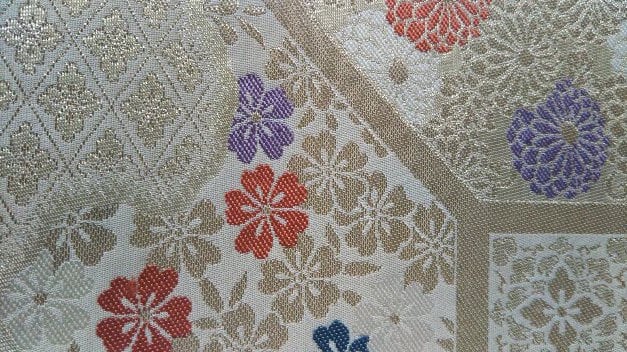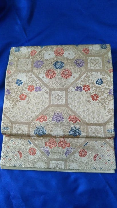 抑えた金色地 亀甲に桐、菊のめでたい柄