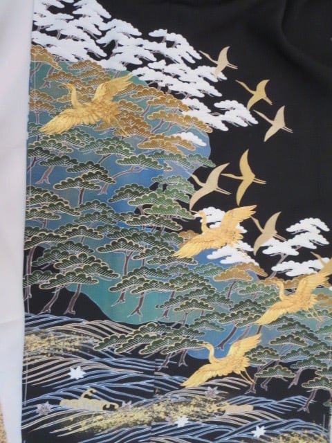 仮絵羽 黒留袖 鶴と松 (未仕立て)